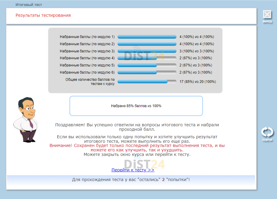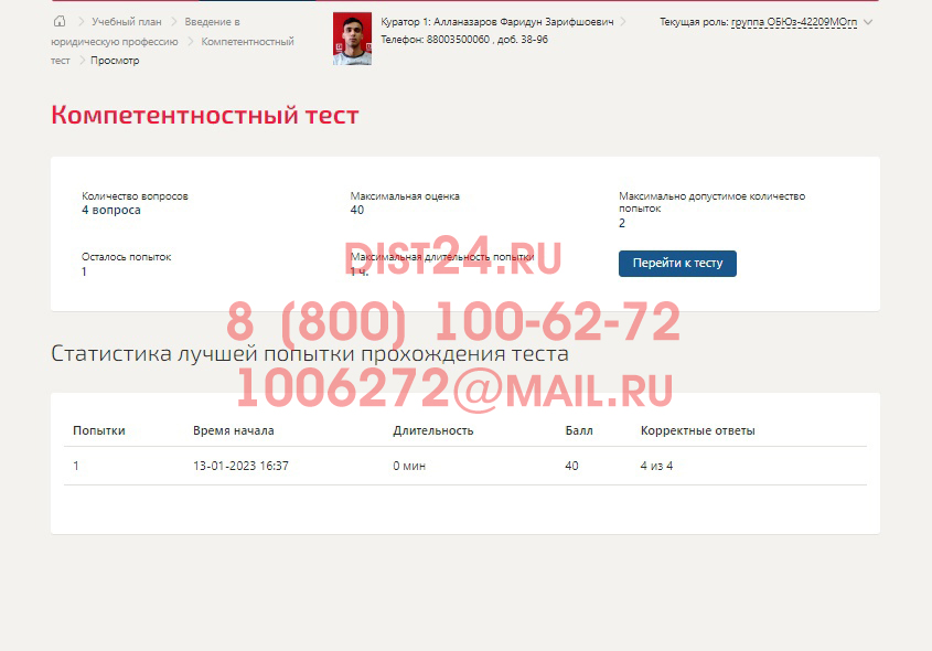 - Прохождение тестов